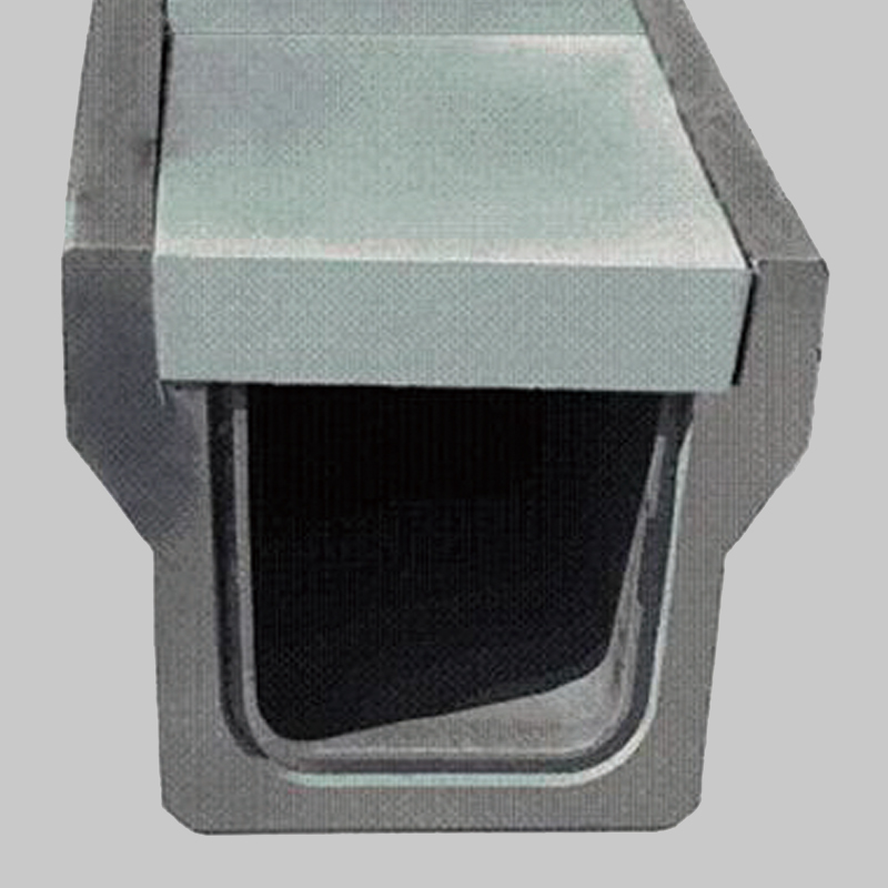 制品为U形槽,制品多种规格,分为轻、重两种类型,具有质量稳定,防水性能好,排水量大,施工简单,防腐防盗等特点,是传统排水沟的更新替代制品。