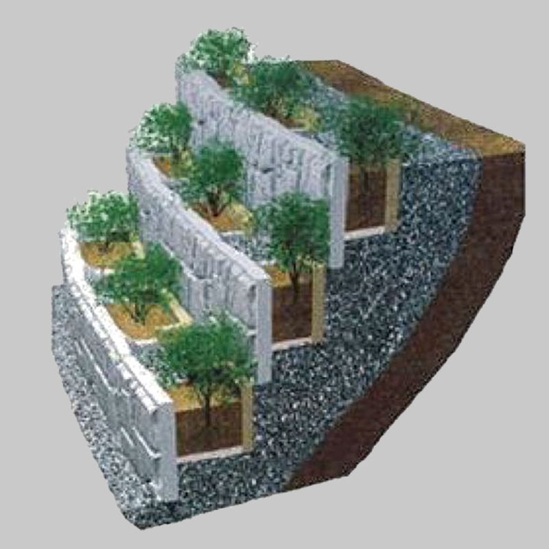 用混凝土、钢筋等预制而成的钢筋混凝土护坡系列制品,制品工厂标准化生产,工艺规范、质量可靠,应用于河道、山体保护及道路两侧倾斜面治理,可减缓水流流速、防止水土流失,有效消波抗震等。同时由于制品自身良好的亲水性,能实现动植物在其中的生长,真正起到净化水质、改善景观和完善生态环境的多重功能。